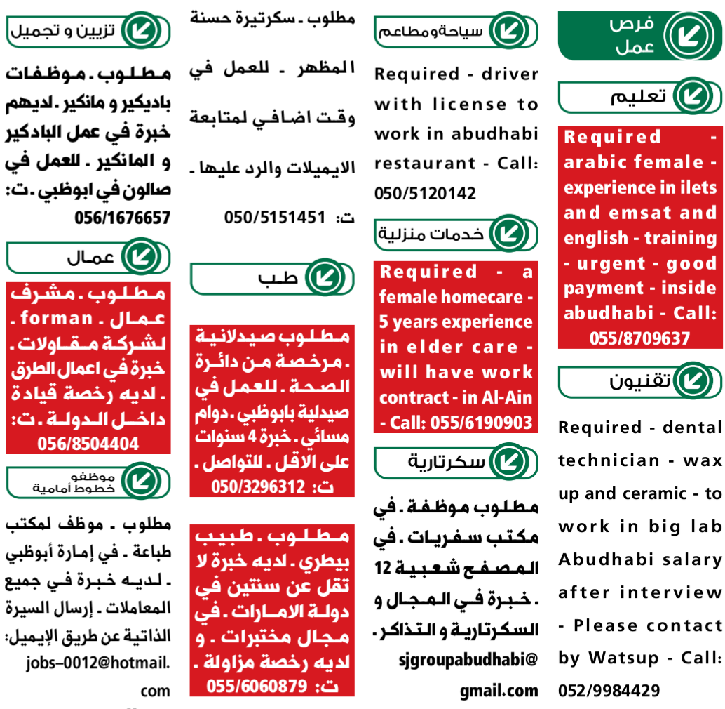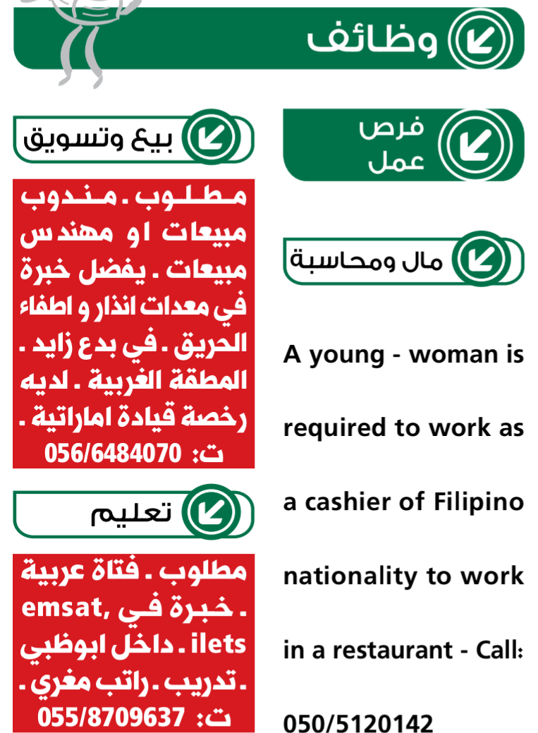 عمل وظائف الامارات الثلاثاء 23/3