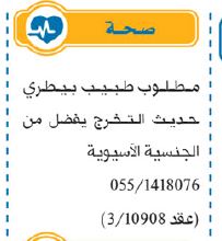 تعلن عن حاجتها الى: