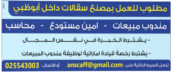 مطلوب مندوبين مبيعات وسكرتارية للعمل في الشارقة.