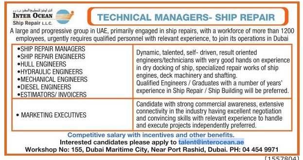 وظائف انتر اوشن لتتصليح السفن.