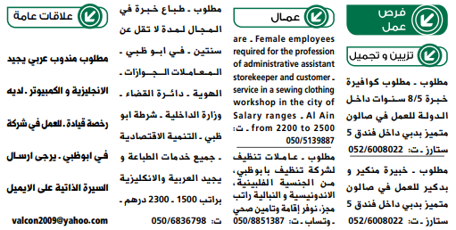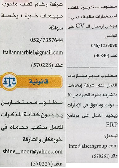 وظائف الصحف الاماراتية 2 اكتوبر 2021.