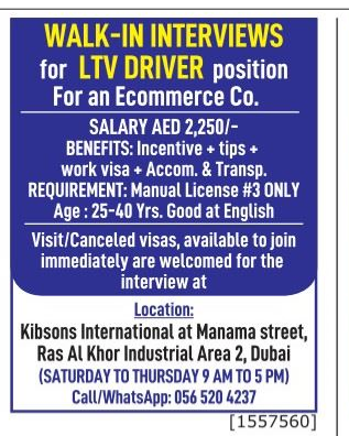 وظائف للسائقين في الامارات.